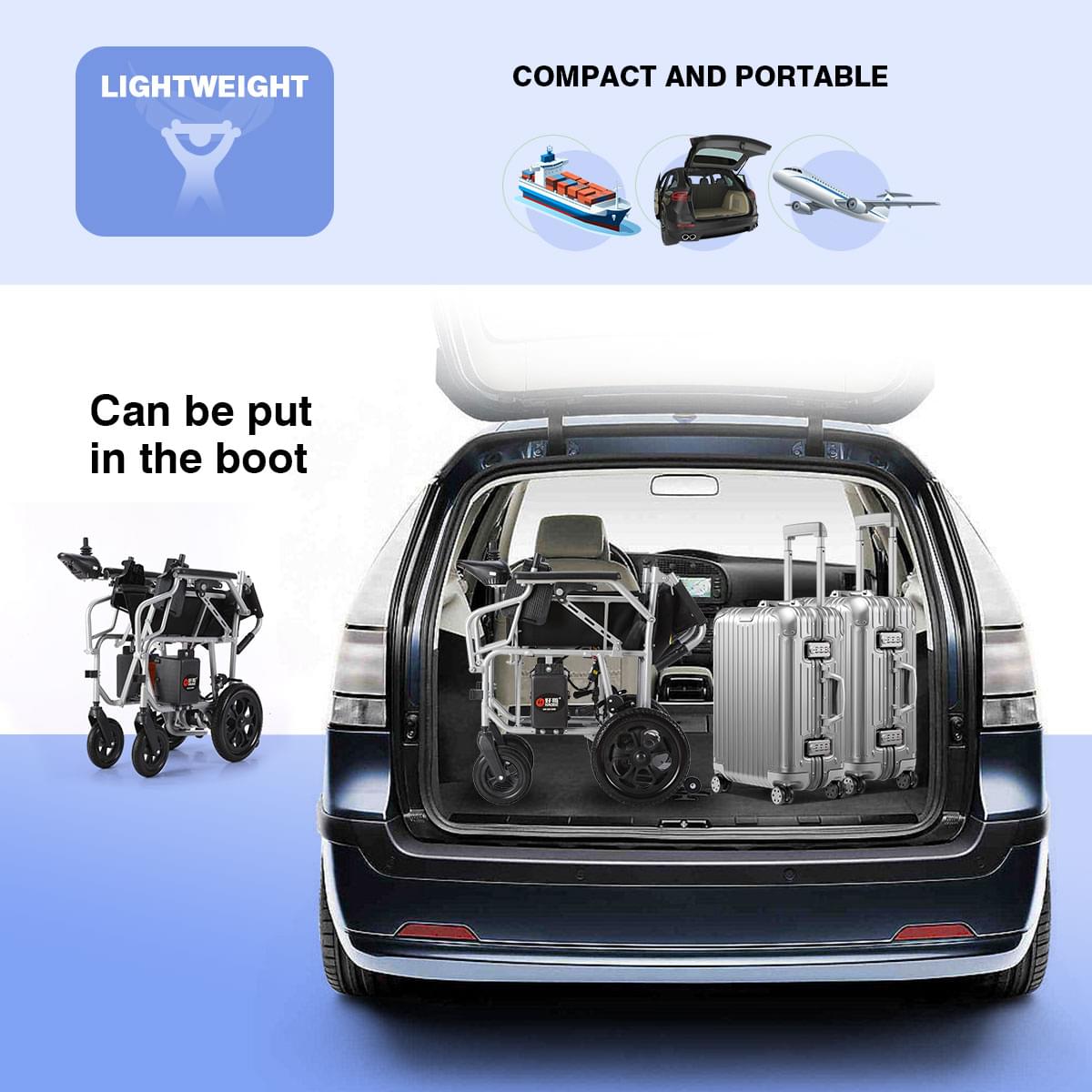 Although built with high-strength steel, the wheelchair remains easy to handle at 28 kg (with battery). The compact folding structure fits elevators, apartments, and vehicle trunks, supporting convenient storage and transport.