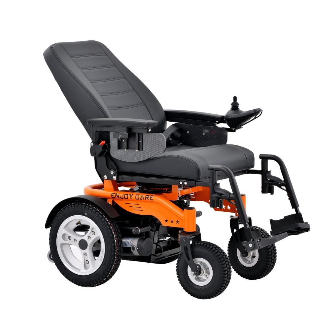 | Controls & Comfort | – Joystick: Programmable, left/right hand compatible – Brake: Intelligent electromagnetic brake (auto-engages on stop) – Armrests: Height-adjustable (5-level) – Leg Rests: Rotatable & depth-adjustable (3-position) – Optional Controls: Sip-and-puff control, chin control (for advanced accessibility) |